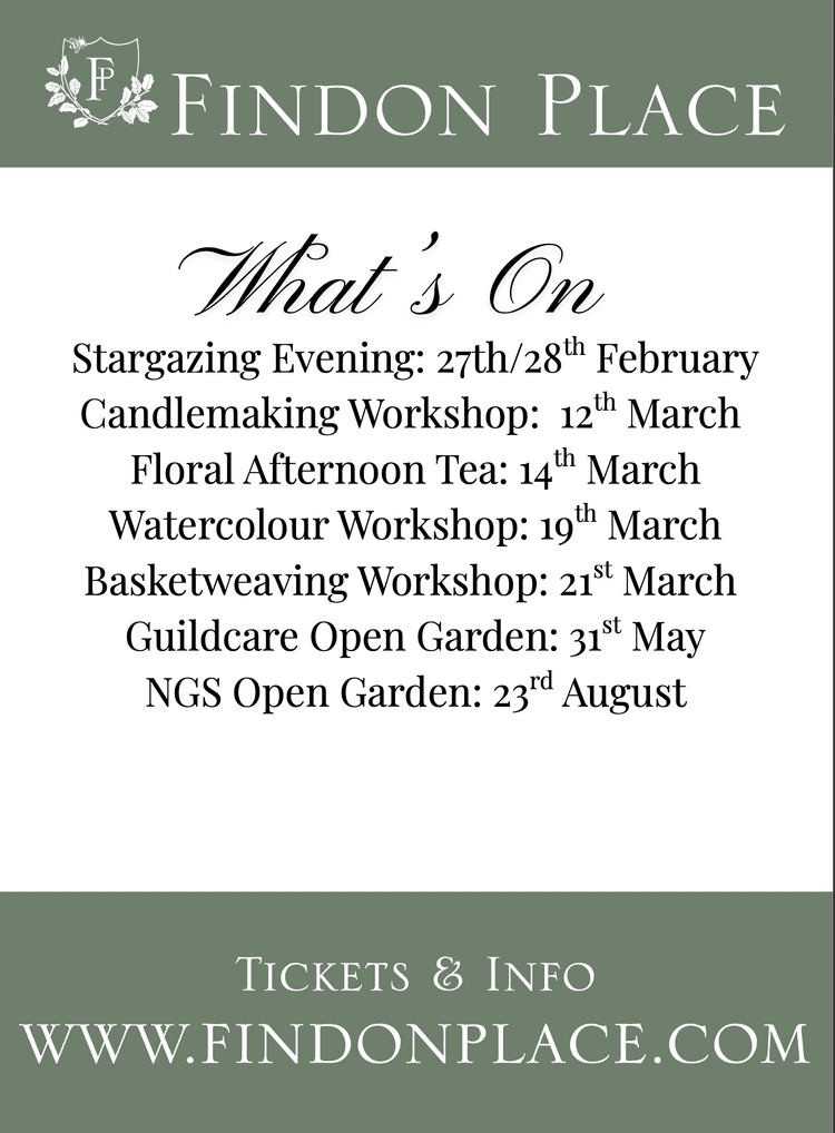 Findon Place are again hosting a number of events and workshops next year. For more information, please click here.